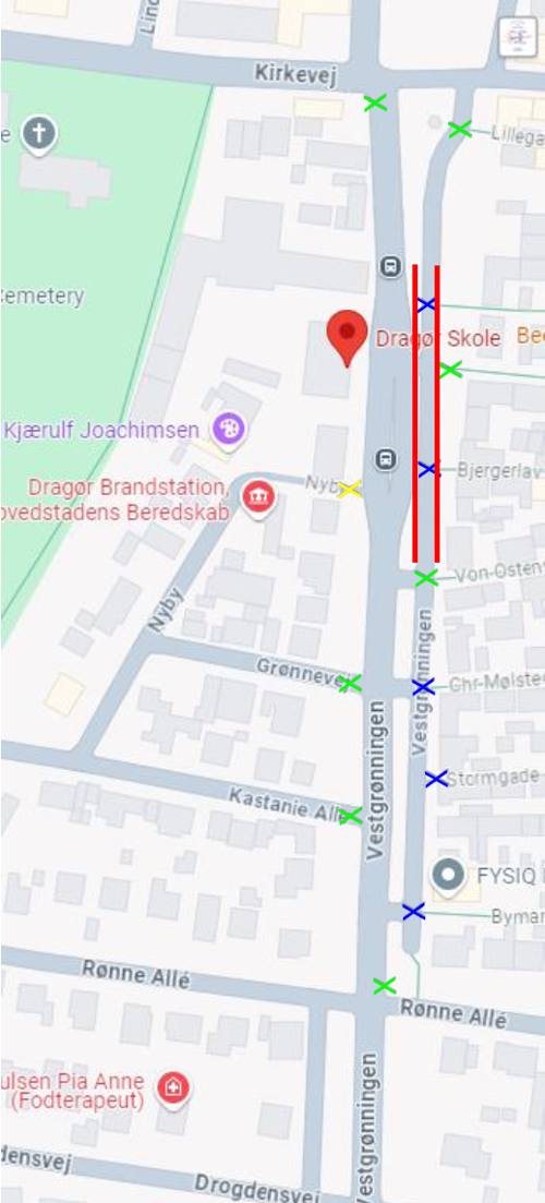 Der er parkeringsforbud på strækningen markeret med rødt på nedenstående kort (mellem Vognmandsgade og Von Ostensgade) fra kl. 7.30 til kl. 13. Du kan klikke på kortet for at åbne det.